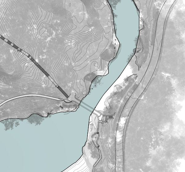 Custom GIS-based mapping with architecture, infrastructure, waterway, and ecological layers for proposed demo and redesing of RFK Stadium in Washington, D.C.